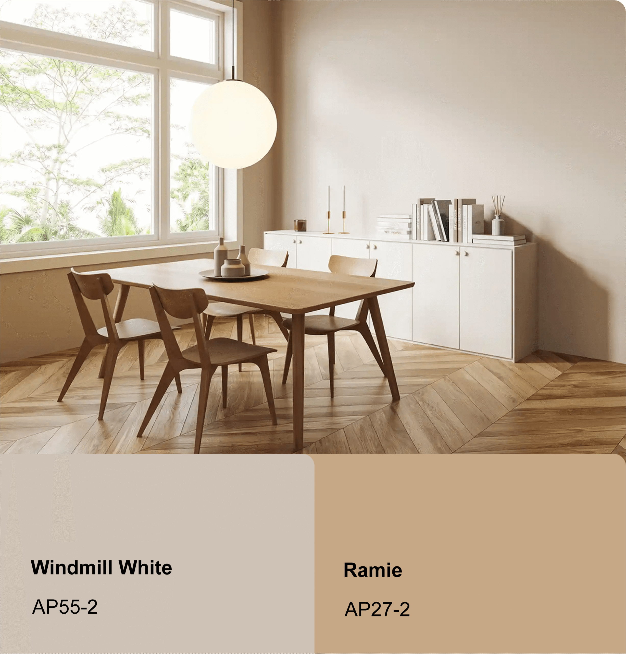 Warna Netral Hangat (Hangat Putih, Beige, Krem) menjadi pondasi utama gaya natural minimalis. Pilih cat tembok / cat dinding seperti Danabright atau Danacryl Sheen & Matt untuk tampilan interior premium untuk dinding utama.