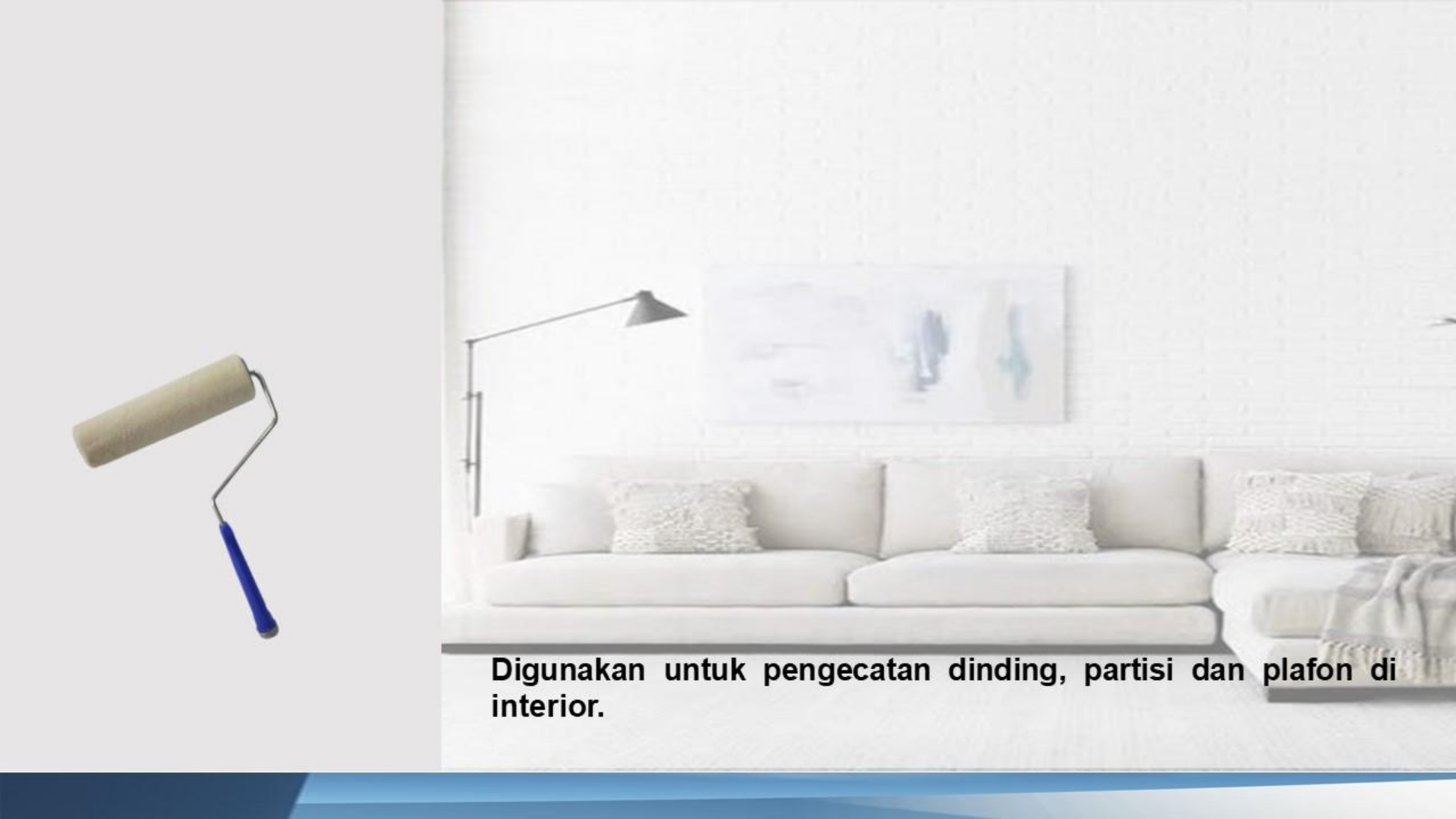 - Pastikan permukaan yang akan dicat sudah benar-benar bersih dan kering, kelembapan tembok ≤ 18 % dan kadar alkali pH 7 – 9.
