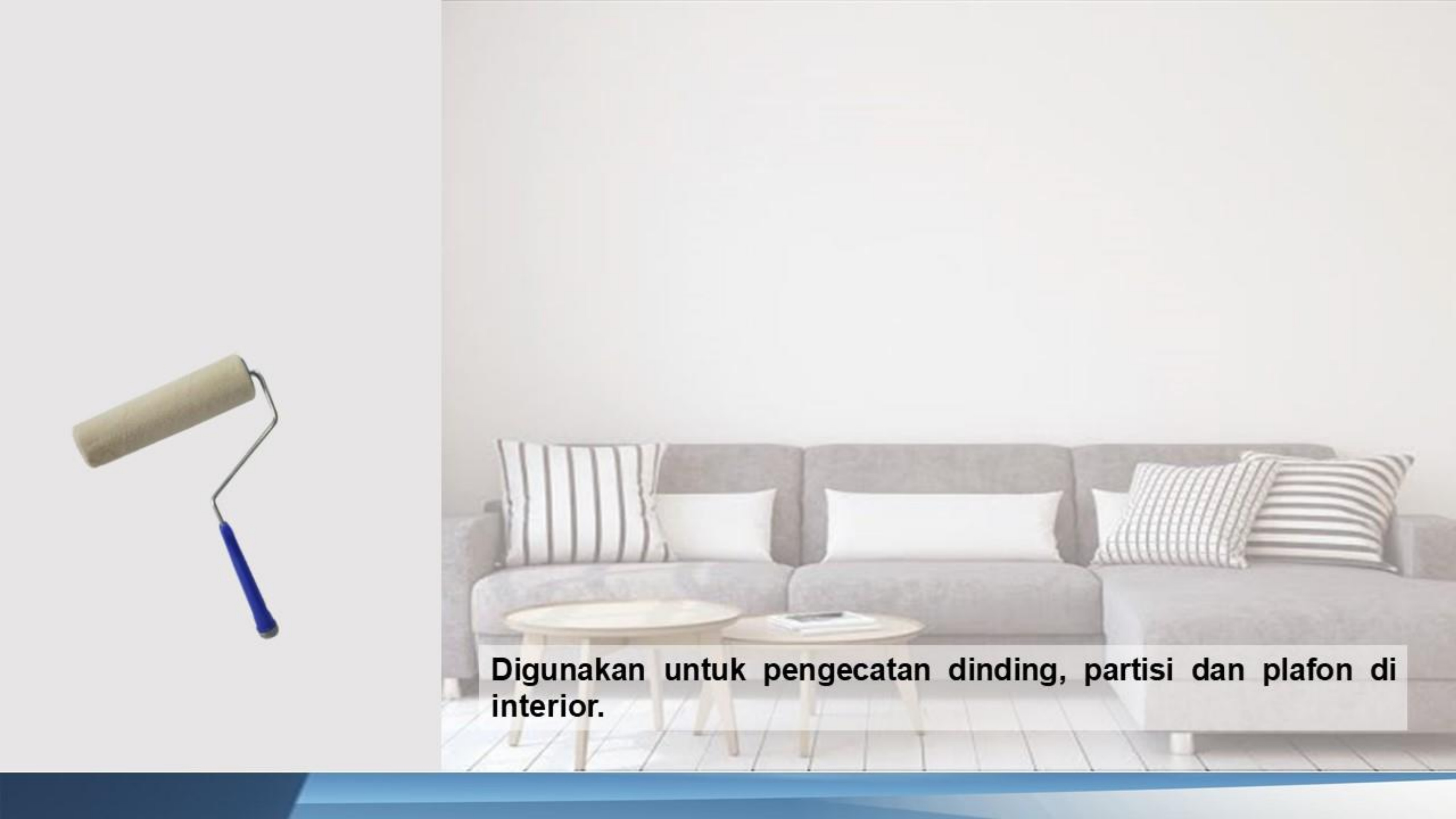 - Aplikasi: Kuas, rol, atau alat semprot/spray